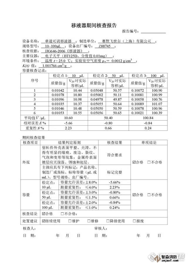 附上一份最近的單道可調(diào)移液器期間核查報告,供參考。