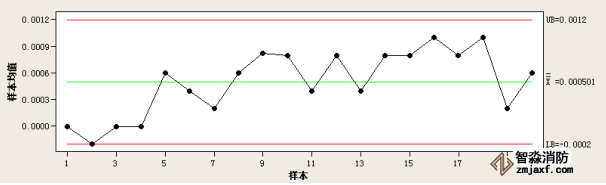 判定準(zhǔn)則:不能有點(diǎn)超出上、下控制限;不能有連續(xù)9點(diǎn)(或更多)落在控制中心線的同一側(cè);不能有連續(xù)6點(diǎn)(或更多)持續(xù)上升或下降;不能有連續(xù)14點(diǎn)交互升降。