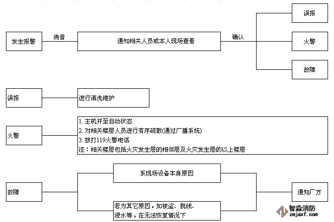 火災(zāi)自動報警及聯(lián)動系統(tǒng)操作流程圖