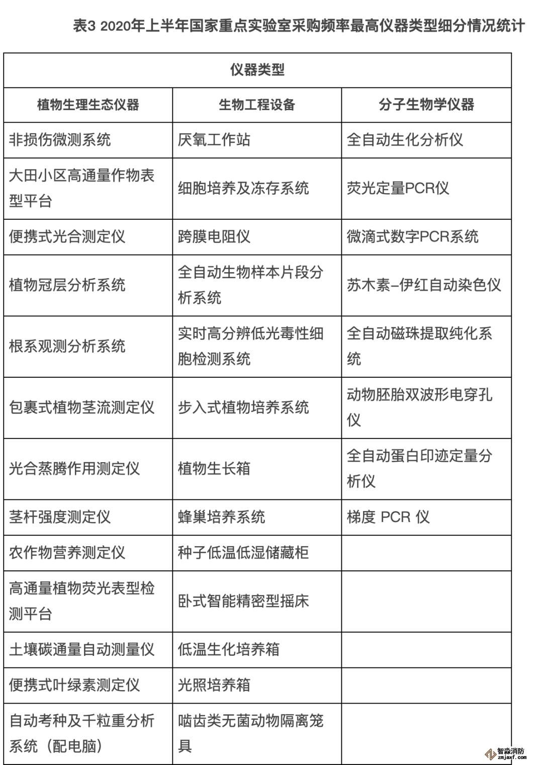 以上為2020年上半年個(gè)國(guó)家重點(diǎn)實(shí)驗(yàn)室儀器設(shè)備采購(gòu)概況分析??梢钥吹剑锱c農(nóng)業(yè)研究領(lǐng)域的國(guó)家重點(diǎn)實(shí)驗(yàn)室的采購(gòu)需求更加旺盛,相應(yīng)的植物生理生態(tài)儀器、生物工程設(shè)備、分子生物學(xué)儀器、光學(xué)顯微鏡、氣體檢測(cè)儀、光譜、質(zhì)譜、色譜、動(dòng)物實(shí)驗(yàn)儀器等,是采購(gòu)頻率最高的儀器。