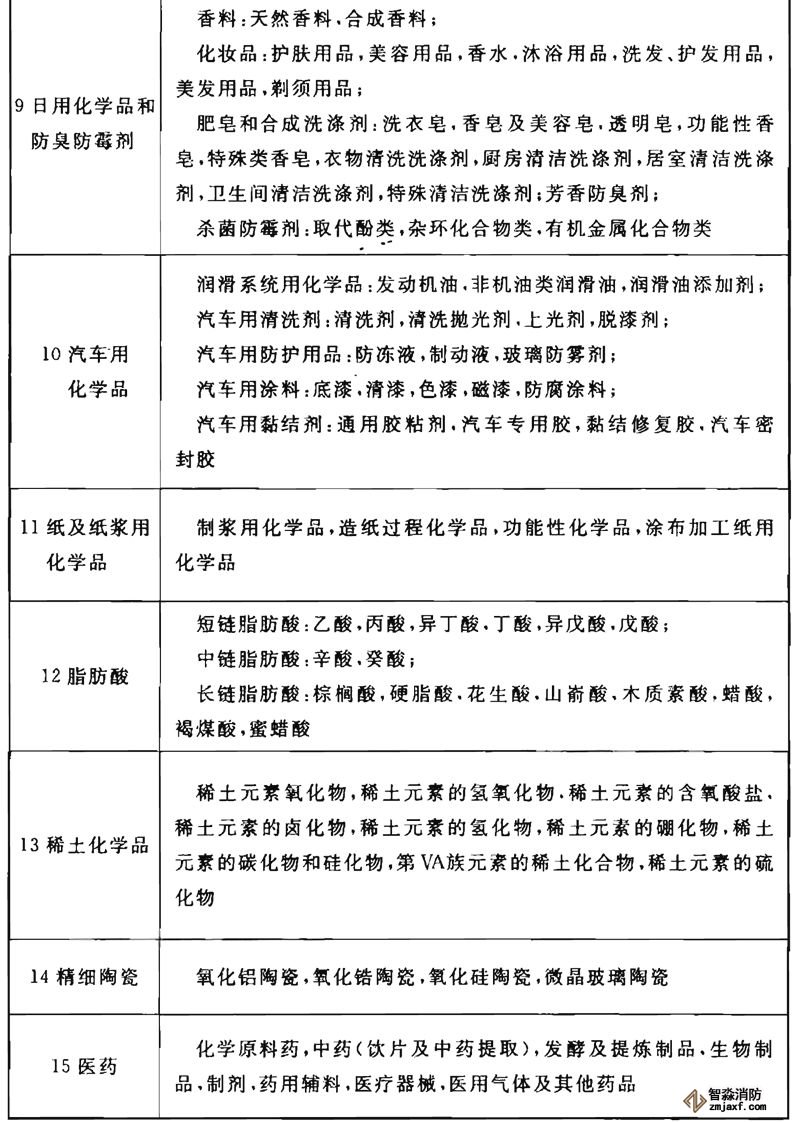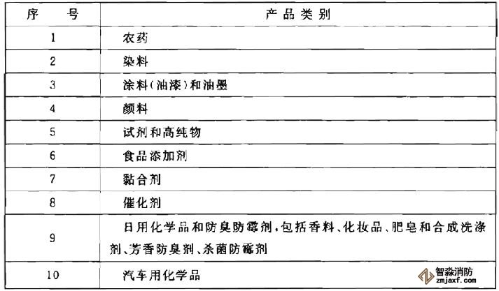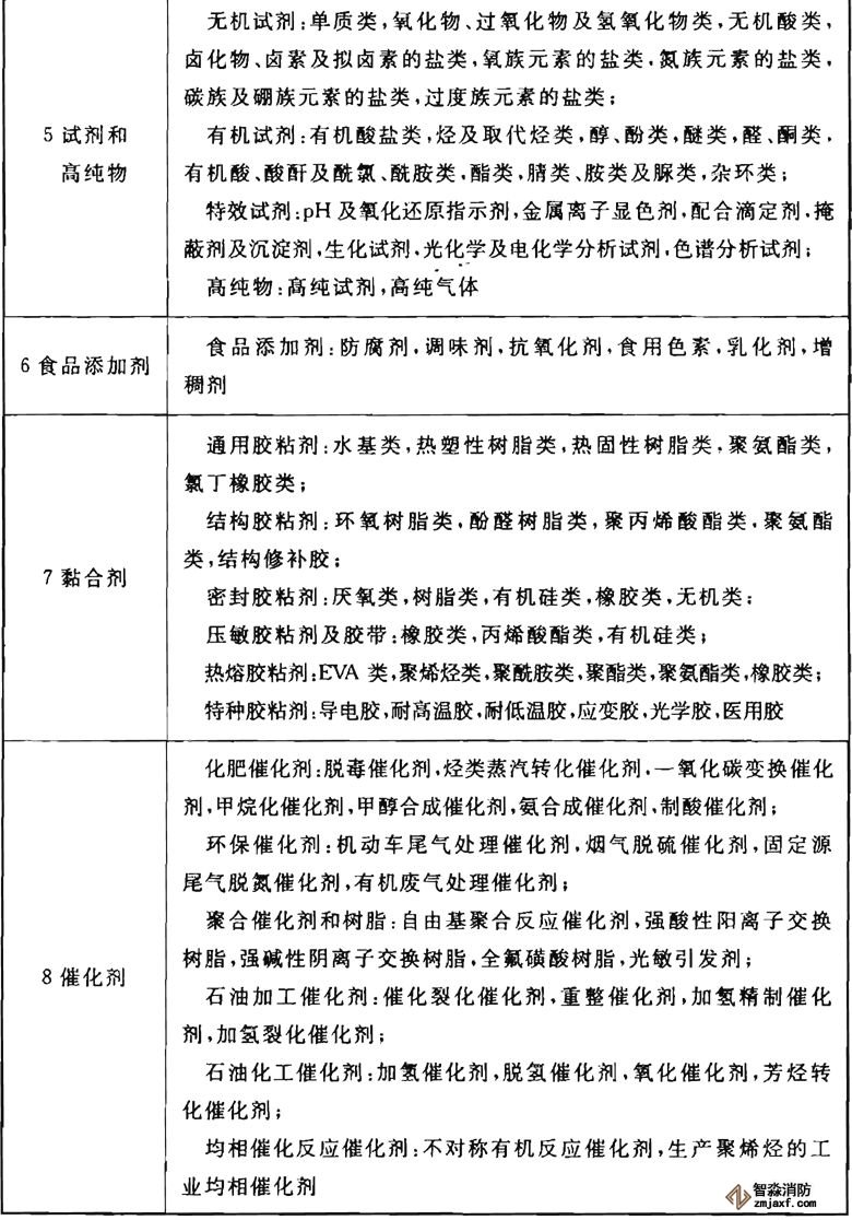表1是在上海市工程建設(shè)規(guī)范《精細(xì)化工企業(yè)設(shè)計防火規(guī)范》DGJ 08的基礎(chǔ)上,參照日本1990年精細(xì)化工產(chǎn)品分類,并結(jié)合我國精細(xì)化工產(chǎn)品品種的發(fā)展制定的。
