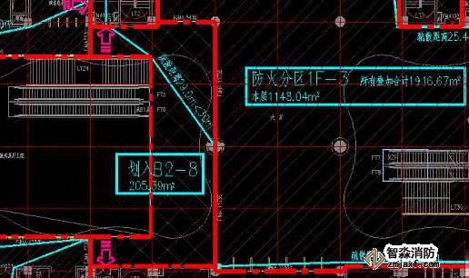 圖 2防火分區(qū) B2 - 8 一層平面示意圖